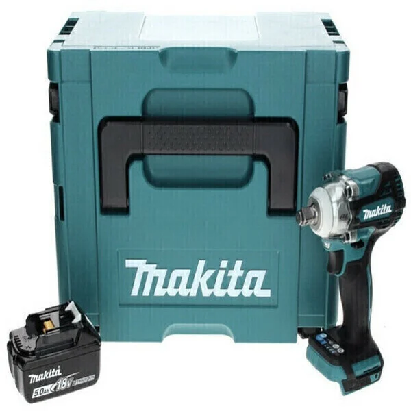 Le modèle DTW300T1J est livré avec une batterie Li-ion 18 V 5,0 Ah, offrant une autonomie prolongée pour des sessions de travail plus longues. Le tout est fourni dans un coffret Makpac, facilitant le transport et le rangement de l’outil et de ses accessoires.
