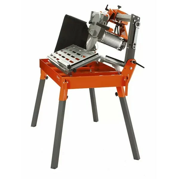 La tête de coupe peut être plongée ou inclinée jusqu’à 45°, ce qui apporte une grande polyvalence dans les coupes en biais. Elle est équipée d’un bac à eau amovible pour faciliter le nettoyage et assurer un refroidissement efficace du disque. Cette scie combine ainsi précision, robustesse et ergonomie, idéale pour les professionnels de la maçonnerie.
